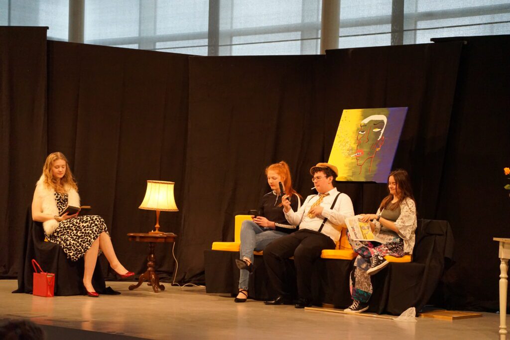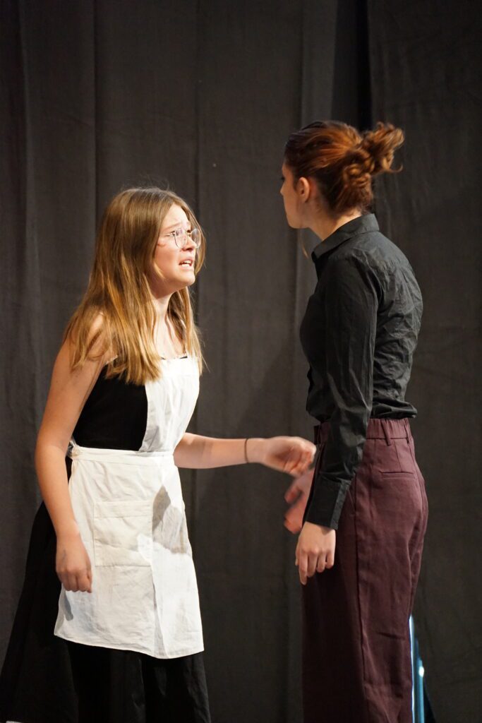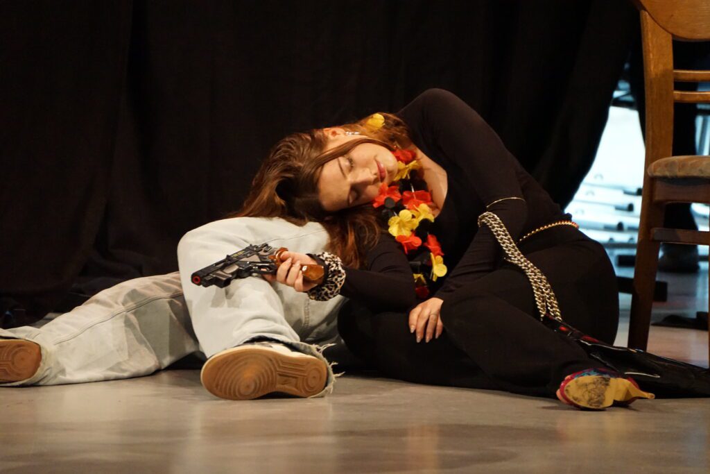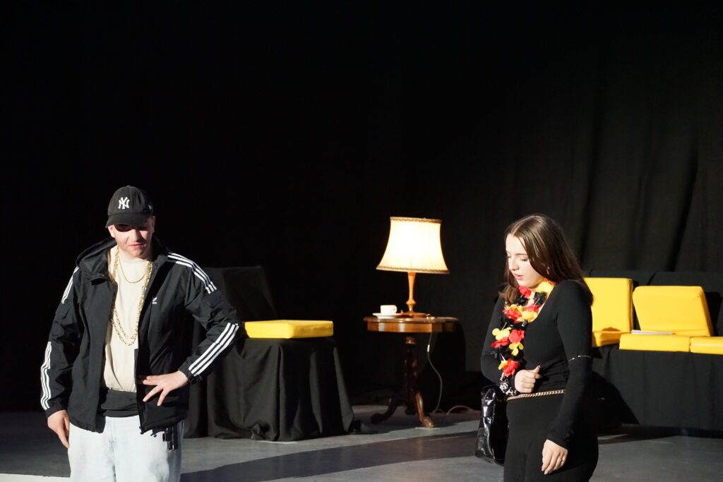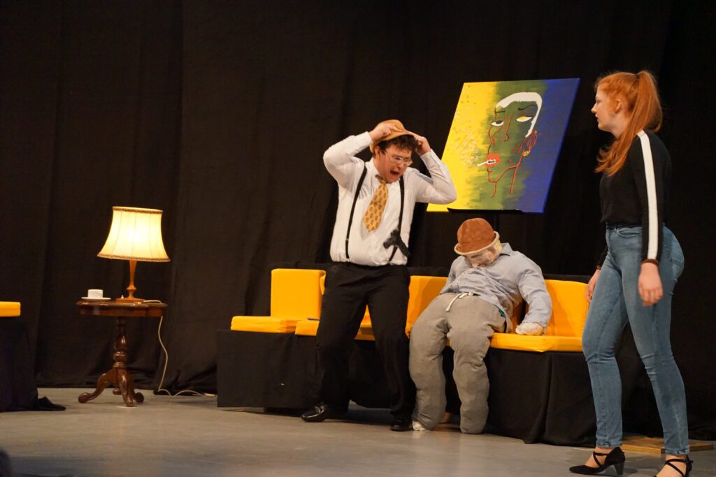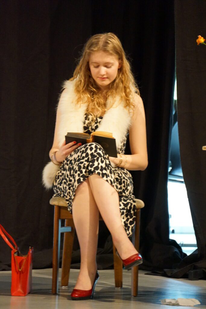 Das titelgebende Etablissement war hierbei der Schauplatz einer Krimikomödie, die weder an den zu erwartenden Klischees (vom einfältigen Gangster bis zum allgegenwärtigen, Tee servierenden Dienstmädchen mit weißer Schürze ), noch an überraschenden Wendungen der Handlung und allerlei grotesk überzeichneten Situationen sparte. Zu erleben war eine rasante Abfolge von höchst unterschiedlichen Szenen, die bewusst nicht auf eine spektakuläre Enthüllung nach Whodunnit-Manier zusteuerte, sondern vielmehr ausreichend Raum für Nebenschauplätze gab und damit sicherstellte, dass alle Akteur*innen die Gelegenheit hatten, sich in verschiedensten Konstellationen und einer großen Bandbreite an Ausdruck zu präsentieren. Das Publikum hatte jedenfalls spürbar seine Freude an den Charakterstudien, die die jungen Schauspieler*innen gekonnt und individuell auf die Bühne brachten.