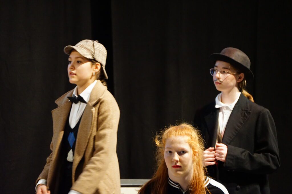 Miss Marple, Hercule Poirot, Sherlock Holmes und Doktor Watson: wer kennt sie nicht, die berühmtesten Ermittler*innen der klassischen britischen Krimiliteratur. Aber was würde passieren, wenn alle diese Figuren an einem Ort aufeinanderträfen? Bei der diesjährigen Aufführung der Mittelstufen-Theater-AG konnte man diesem spannenden Experiment beim selbst entwickelten Stück „Dead Body Inn“ im HöGy-Festsaal beiwohnen.