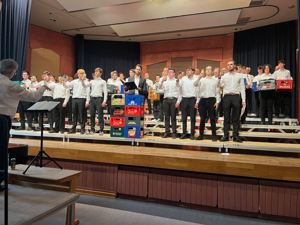 Zwischendrin wurde es richtig handfest: Bierkästen als Sitzbänke, andere aufgestapelt zu Tischen, überall Flaschen und Dosen! Mitten in der „Taberna“, eben jener zeitlosen Form der geselligen Kneipe, hingen die bierseligen Saufbrüder ab – halb trinkend, halb singend. Und sie erzählten melodisch von noch weiteren Zechern: Diener und Kaiser, Oma und Papst…