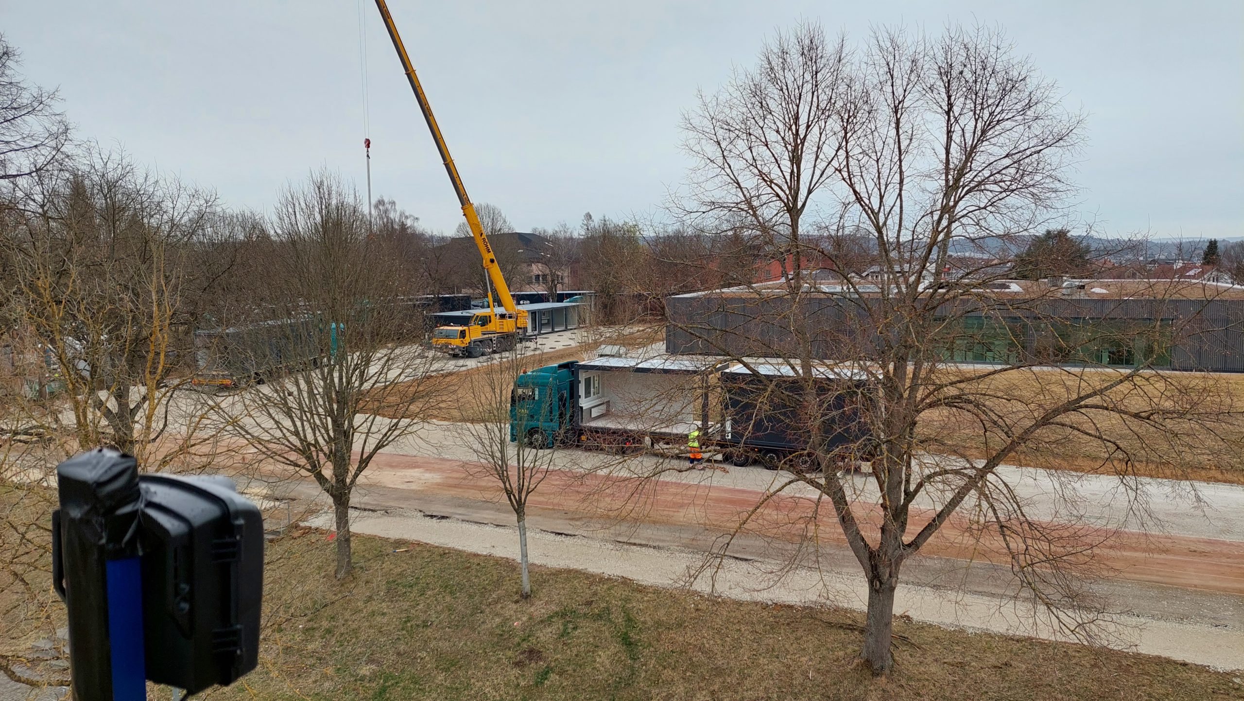 Heute wurde mit der Anlieferung und dem Aufbau der Container begonnen.