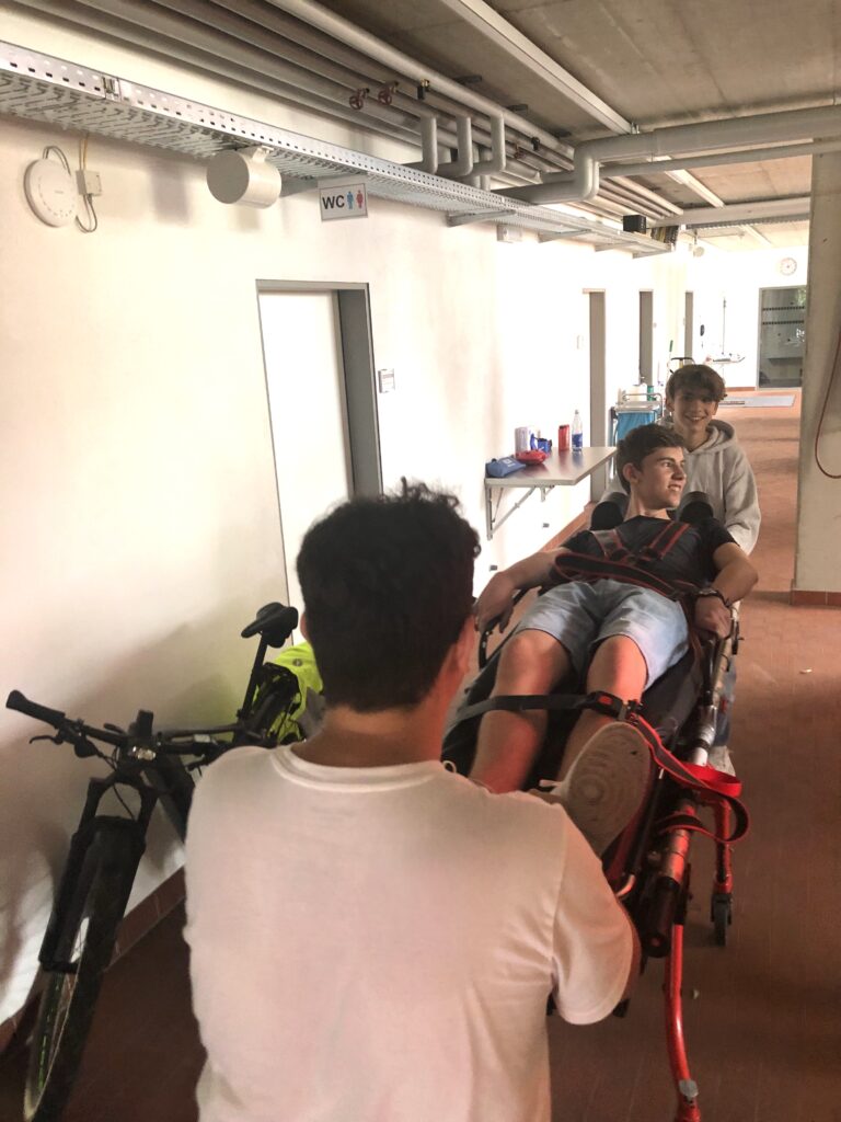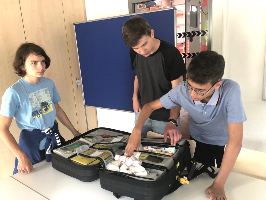 Frau Heckel erzählt uns, dass sie damals in ihrer Schulzeit auch bei den Schulsanitätern war. Für sie war das der Einstieg in ihren jetzigen Beruf.