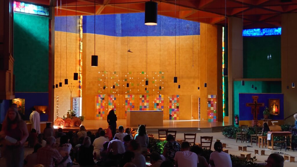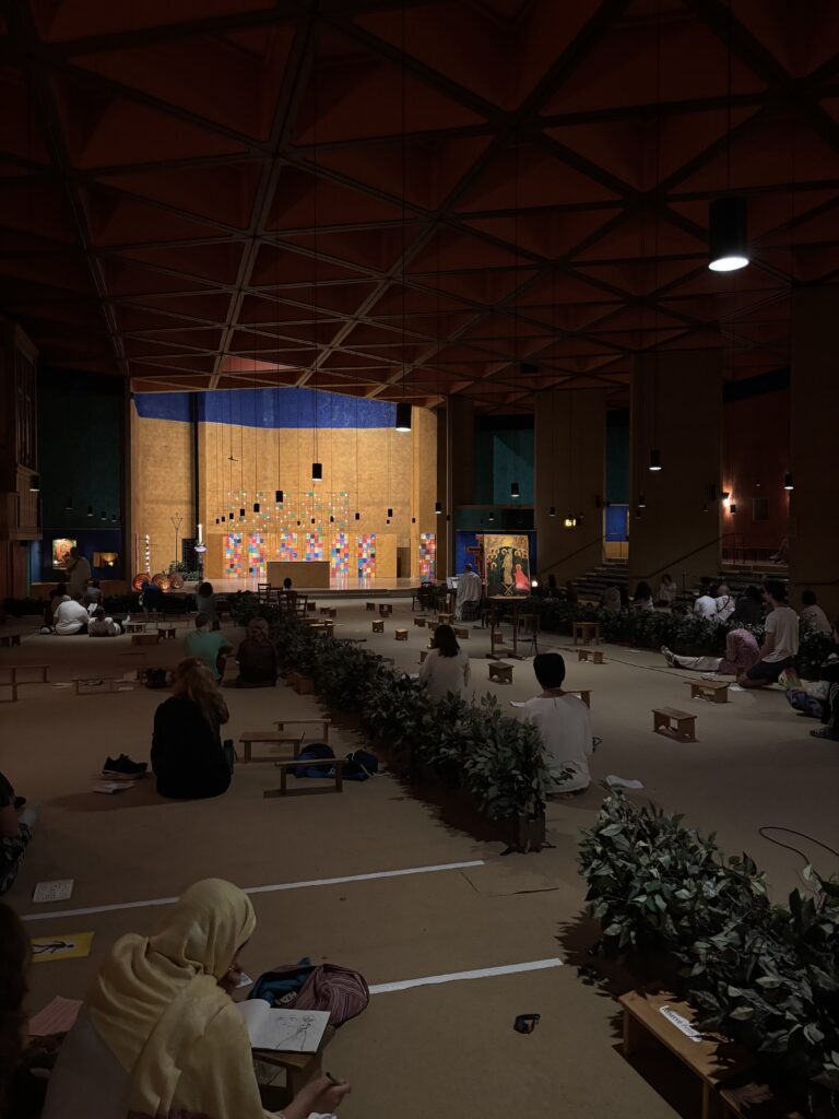 Anschließend nahmen wir am ersten von insgesamt drei täglichen Gottesdiensten teil. Dieser war für viele von uns ein völlig neues Erlebnis, da wir Gottesdienste von Zuhause anders kannten: Es wurde viel gesungen – auf Französisch, Deutsch, Niederländisch, Ungarisch und anderen Sprachen. Die sogenannten Frères (Mönche) lasen aus der Bibel vor, und es gab eine etwa achtminütige Stillezeit fürs persönliche Beten und Nachdenken. Bei den Morgengebeten wurde außerdem die Eucharistie gefeiert. Kaum betraten wir die Kirche, übertrug sich die ruhige Atmosphäre spürbar auf uns – getragen von der Stille, die in der Kirche eingehalten wird.