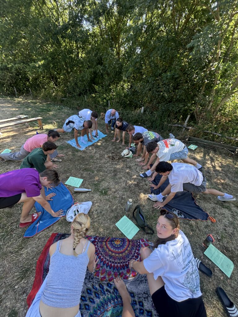Um 10 Uhr trafen wir uns in Kleingruppen zur Bibelarbeit. Unsere Gruppe wurde von Frère Símon angeleitet, der uns mit seiner unterhaltsamen und herzlichen Art schnell für sich gewann. Nach der gemeinsamen Besprechung der Bibelstellen tauschten wir uns in noch kleineren Gruppen über persönliche Fragen aus – zum Beispiel: „Wie würde ich einen Freund trösten, der eine schwere Zeit durchmacht?“, bezogen auf Philipper 2, 19–29. Besonders gerne beendeten wir unsere Treffen mit dem Spiel Impostor, das auch unseren Begleitlehrkräften, Frau Weber und Herrn Böhlert, großen Spaß machte. Zusätzlich bauten wir Yogaeinheiten oder Taizé-Spiele ein.