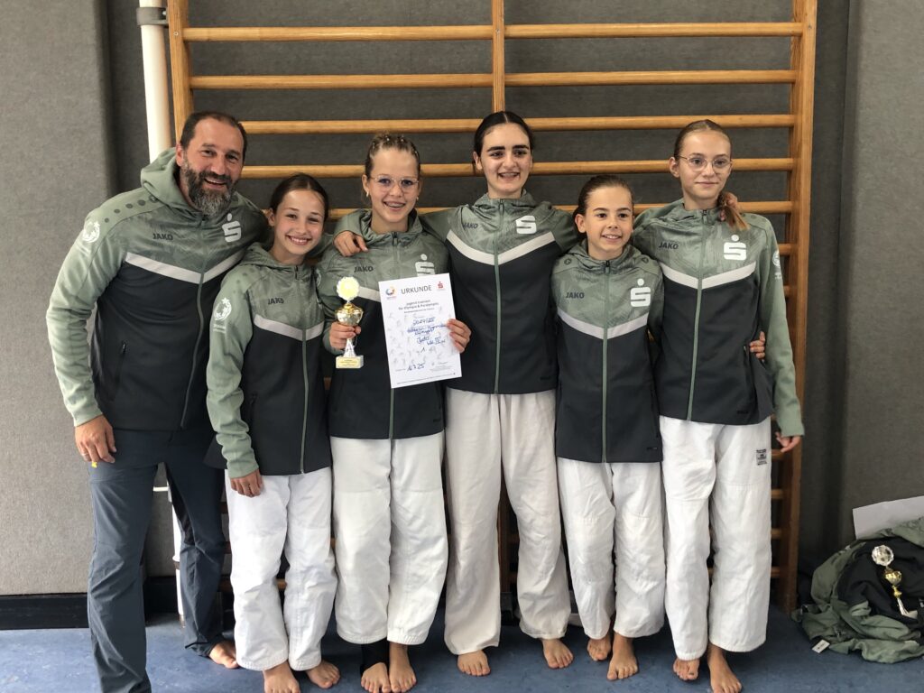 Im Anschluss an die Auftaktveranstaltung wurden alle Teilnehmer zu ihren Wettkampstätten gebracht, für uns Judoka ging es mit dem Charterbus in die Judohalle. Bei unserer Mädchenmannschaft war die Motivation, aber auch die Anspannung besonders groß, da sich der Sieger der Altersklasse III für das Bundesfinale in Berlin qualifiziert. Und, wie die Überschrift schon verrät, wir haben es geschafft! In der finalen Begegnung konnte das Scheffelgymnasium Bad Säckingen knapp mit 2:2, Unterbewertung 20:15 bezwungen werden. Somit fahren die erfolgreichen Mädchen vom 21. – 25. September zum Bundesfinale nach Berlin!