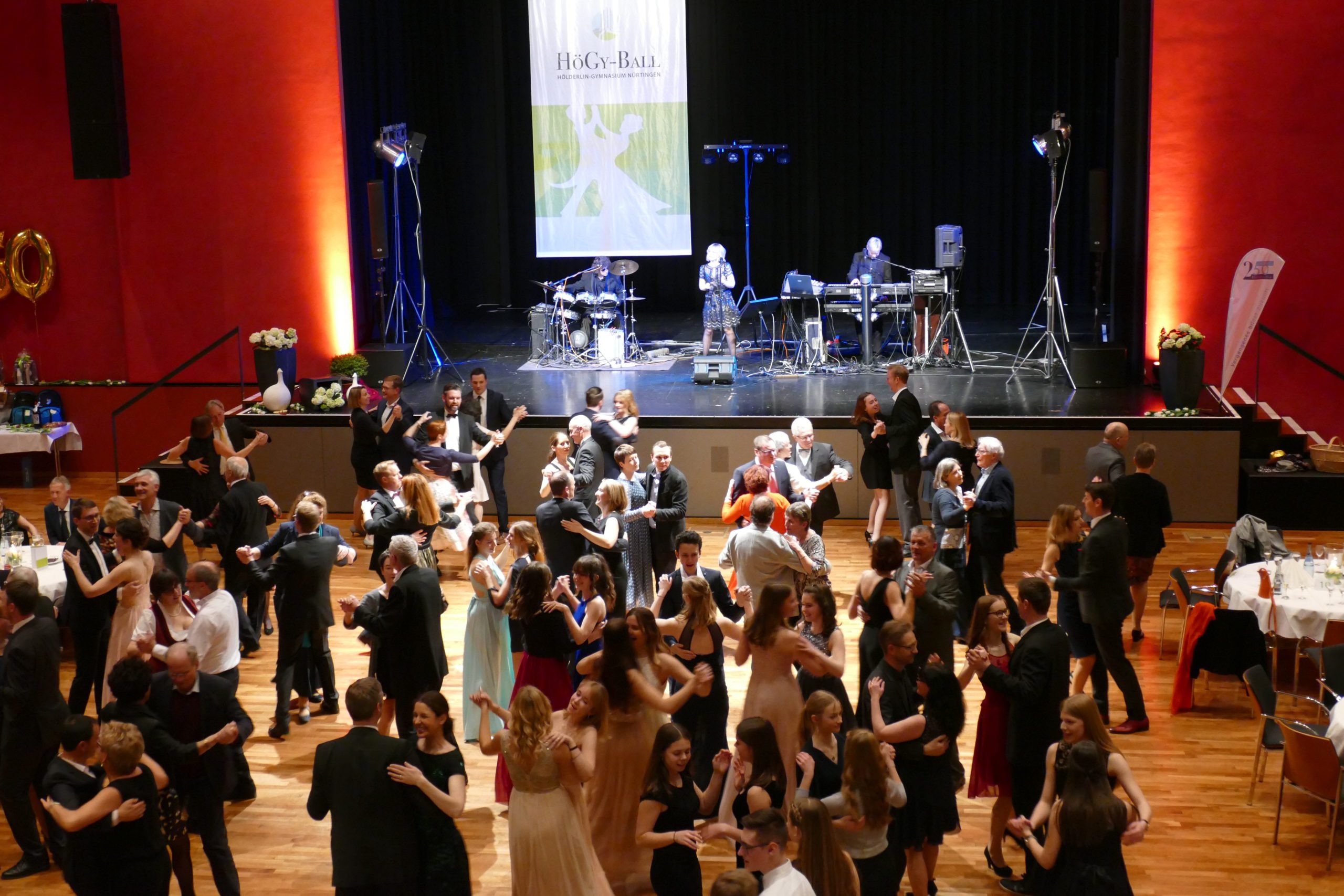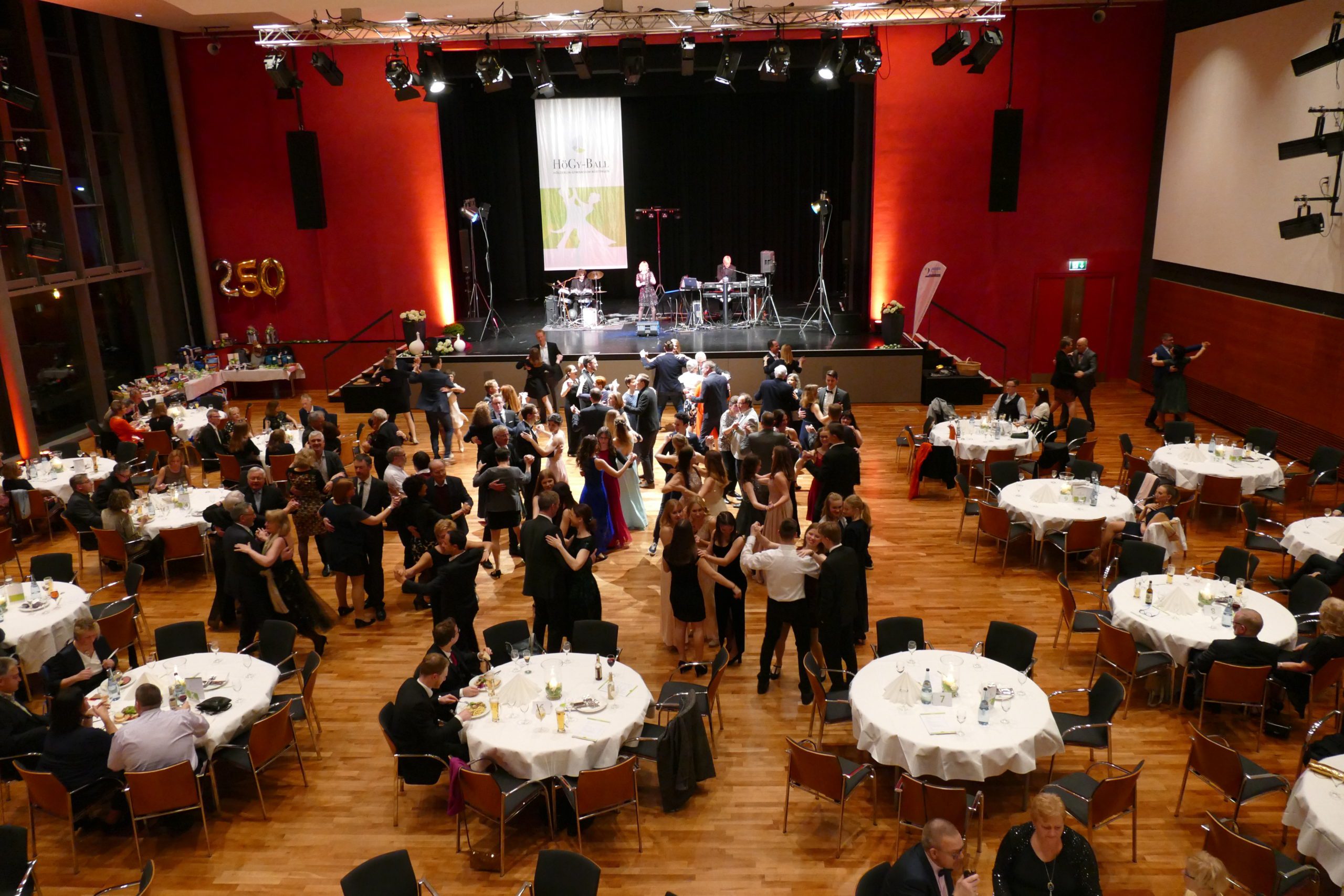 Der nächste Höhepunkt des Jubiläumsjahres ist erfolgreich über die Bühne gegangen. Beim Ball des Vereins der Freunde des HöGy in der Stadthalle K3N wurde allerhand geboten: Spektakuläre Darbietungen, tolle Musik und natürlich ausgiebig Gelegenheit, das Tanzbein zu schwingen. Ein voller Erfolg!