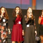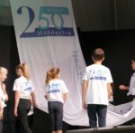 Ein neu erweckter Hölderlin, eindrücklich gespielt von Lucas Neps, führte erstaunlich lebendig als Moderator durch den Abend und ließ neben Oberbürgermeister Dr. Fridrich auch viele Zeitzeugen zu Wort kommen, die das HöGy in den letzten Jahrzehnten hautnah erlebt hatten. Ehemalige Schüler und Lehrer erzählten von Matrizen, die als durchdringend „duftende“ Klassenarbeiten in Erinnerung bleiben und von einer Telefonzelle, die damals direkt am HöGy stand. Von beidem können sich heutige Kinder und Jugendliche wahrscheinlich ebenso wenig ein Bild machen wie von Kassetten im Sprachlabor oder im „Walkman“. Begleitet von Tanzeinlagen umrahmte die eigens zum Jubiläumsjahr gegründete HöGy-Band unter der Leitung von Kevin Hirel die Veranstaltung beschwingt musikalisch mit Liedern aus den letzten fünf Jahrzehnten: von ABBAs „Money, Money, Money“ über „Sweet Dreams“ von Eurythmics bis hin zu Hits der Gegenwart. Und so passte das Motto auf der Jubiläumsfahne über der Bühne: „Vergangenes bildet Zukunft“.