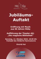 Hölderlin und HöGy – nicht nur der Name verbindet die Schule mit dem Dichter, sondern ebenso der ins Jubiläumsjahr 2019/ 2020 fallende runde Geburtstag. Auch wenn Hölderlin mit seinen 250 Jahren fünfmal so alt ist wie das nach ihm benannte Gymnasium, so waren die 50 Jahre, die das HöGy nun existiert, turbulent und von vielen Veränderungen geprägt. Grund genug also, das Vergangene mit einer Auftaktveranstaltung aus bunten Programmpunkten im Festsaal der Schule zu würdigen.