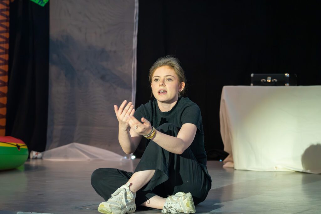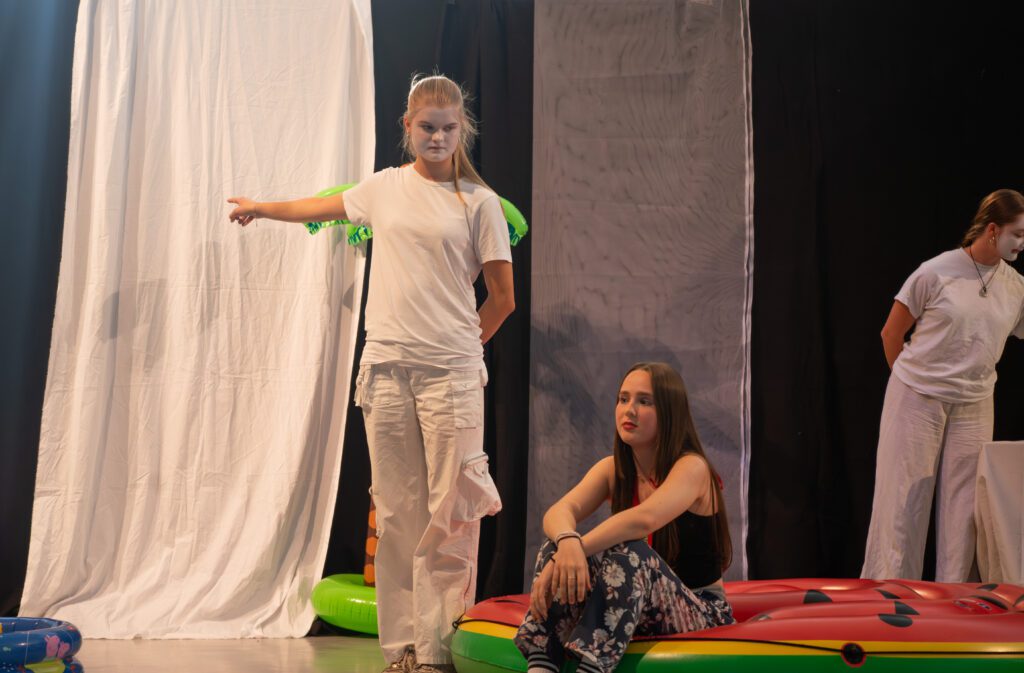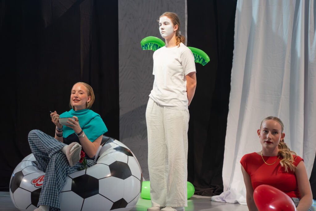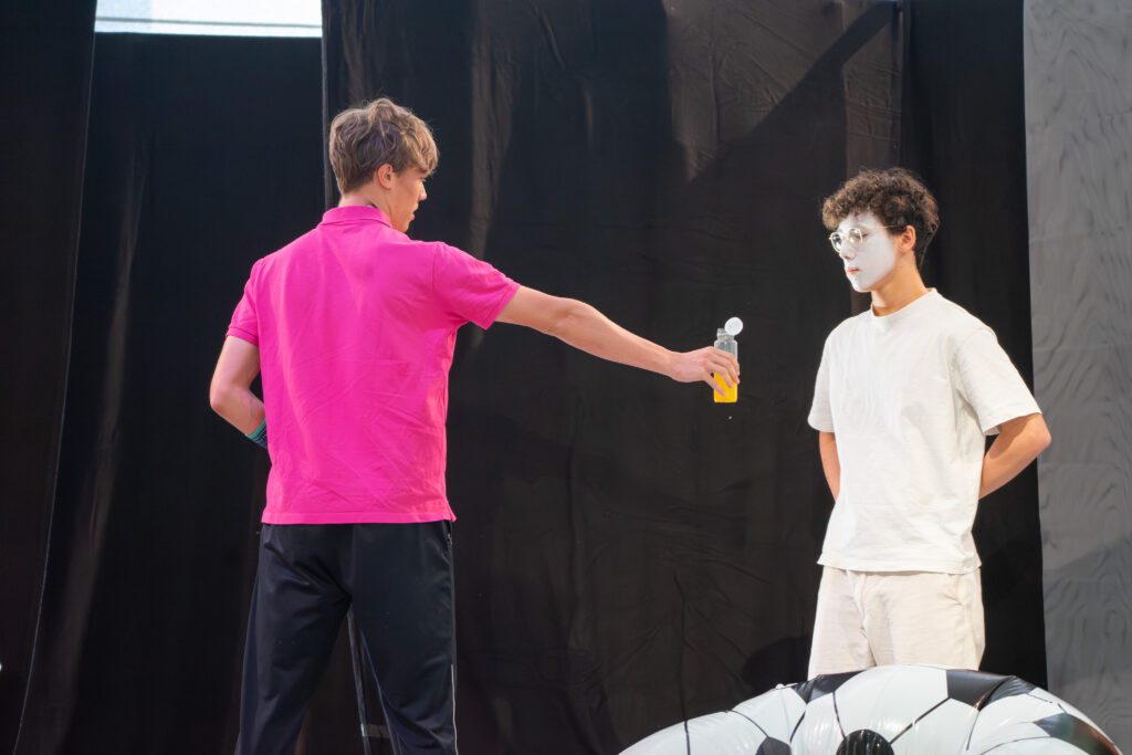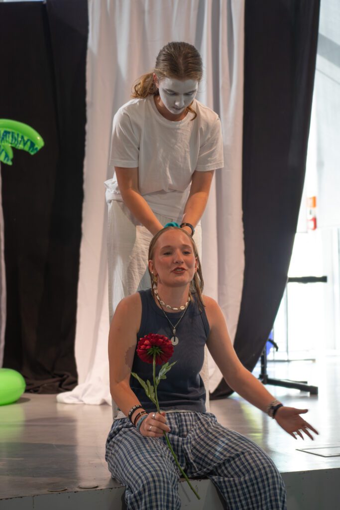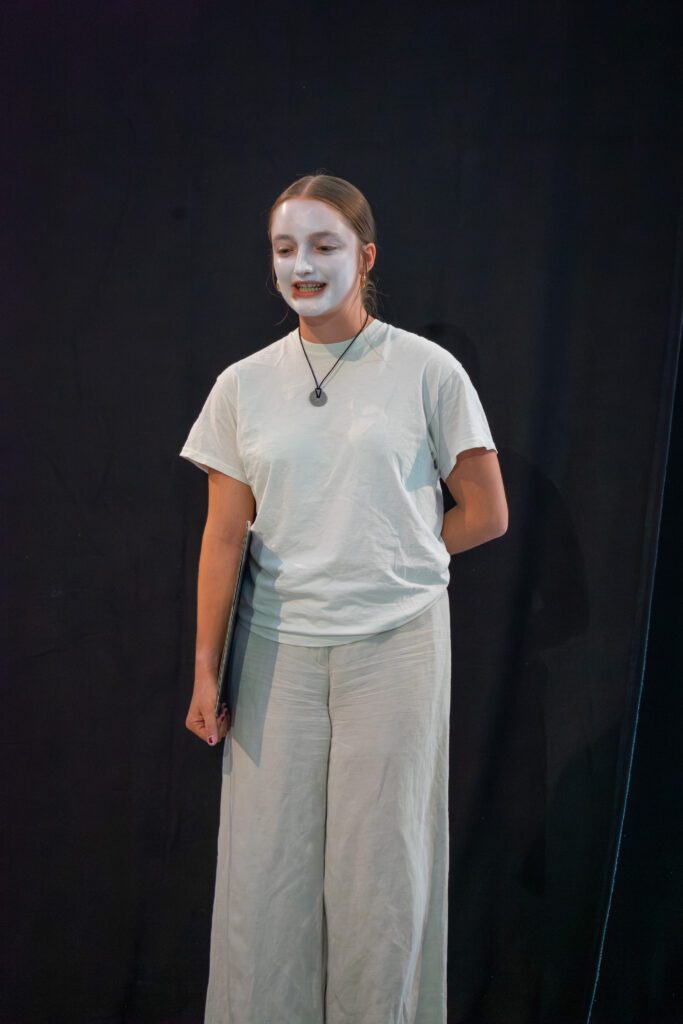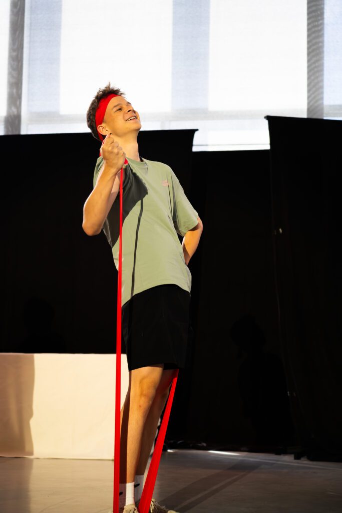 Darüber hinaus wurde die Inszenierung nicht vollständig „von oben herab“ vorgegeben. Vielmehr hatten die Schülerinnen und Schüler oft die Möglichkeit, sich aktiv in die Gestaltung einzubringen. Wer eine kreative Idee hatte, sei es zur Darstellung einer Szene, zur Bewegung oder zur Symbolik, durfte sie äußern, und wenn sie passte, wurde sie auch umgesetzt. Dadurch entstand ein Stück, das nicht nur gespielt, sondern gemeinsam erschaffen wurde.