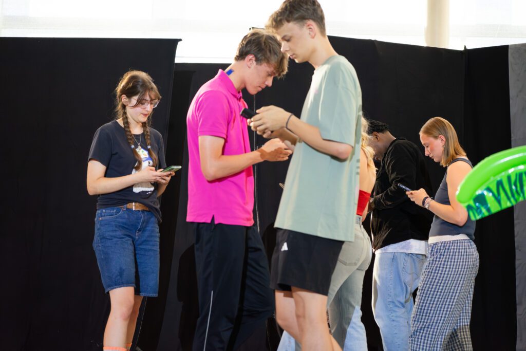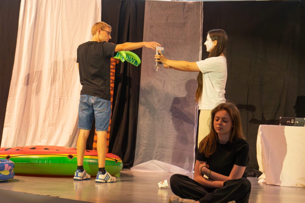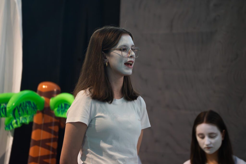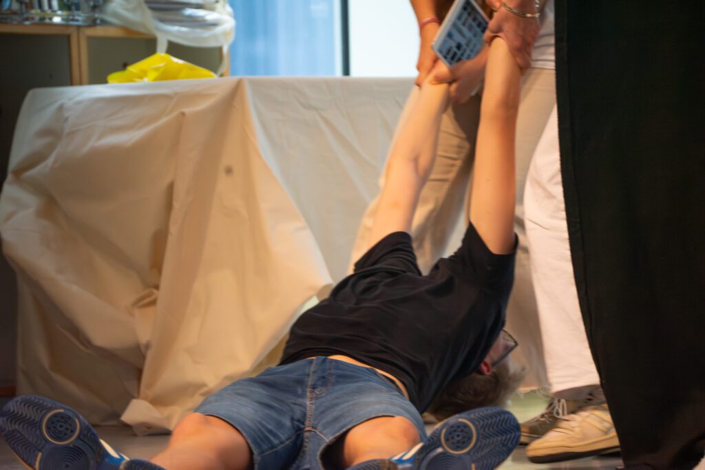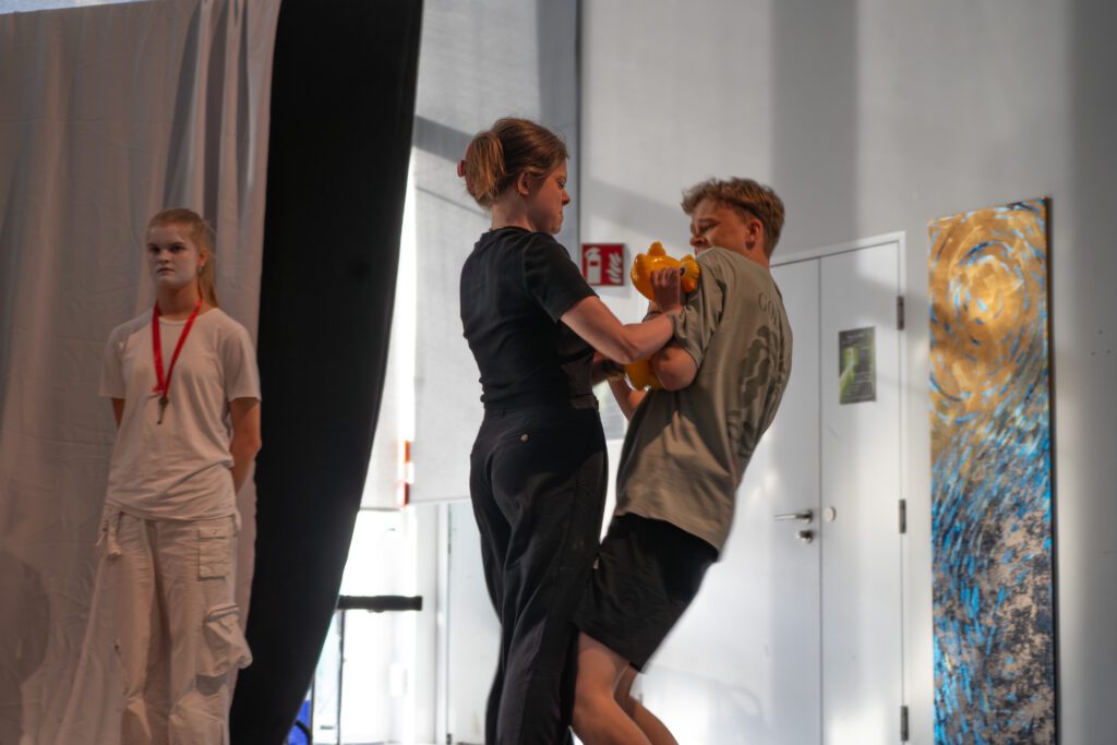 Besonders spannend war die Arbeitsweise des Kursleiters Herrn Flick: Um Szenen mit synchronen Sprechanteilen präzise einzustudieren, nutzte er beispielsweise Schnipsen. So lernten die Schauspielerinnen und Schauspieler, Texte synchron zu sprechen: Zunächst unterstützt durch das akustische Signal, später auch eigenständig im richtigen Tempo. Dieses gemeinsame Üben schuf ein starkes Gefühl für Timing und Rhythmus.