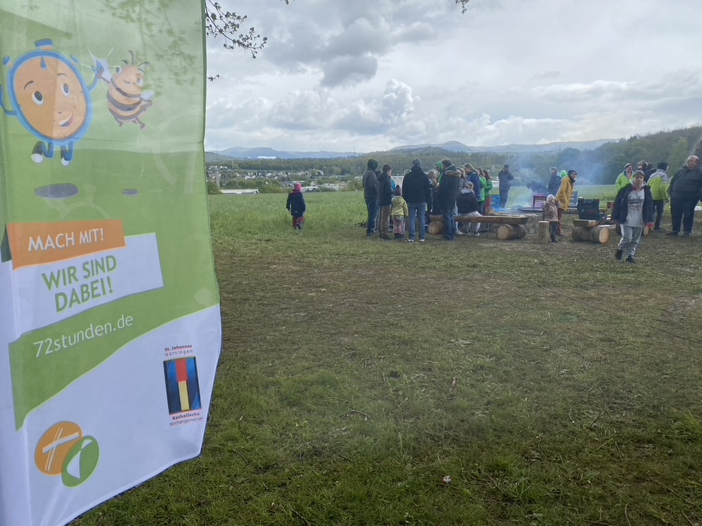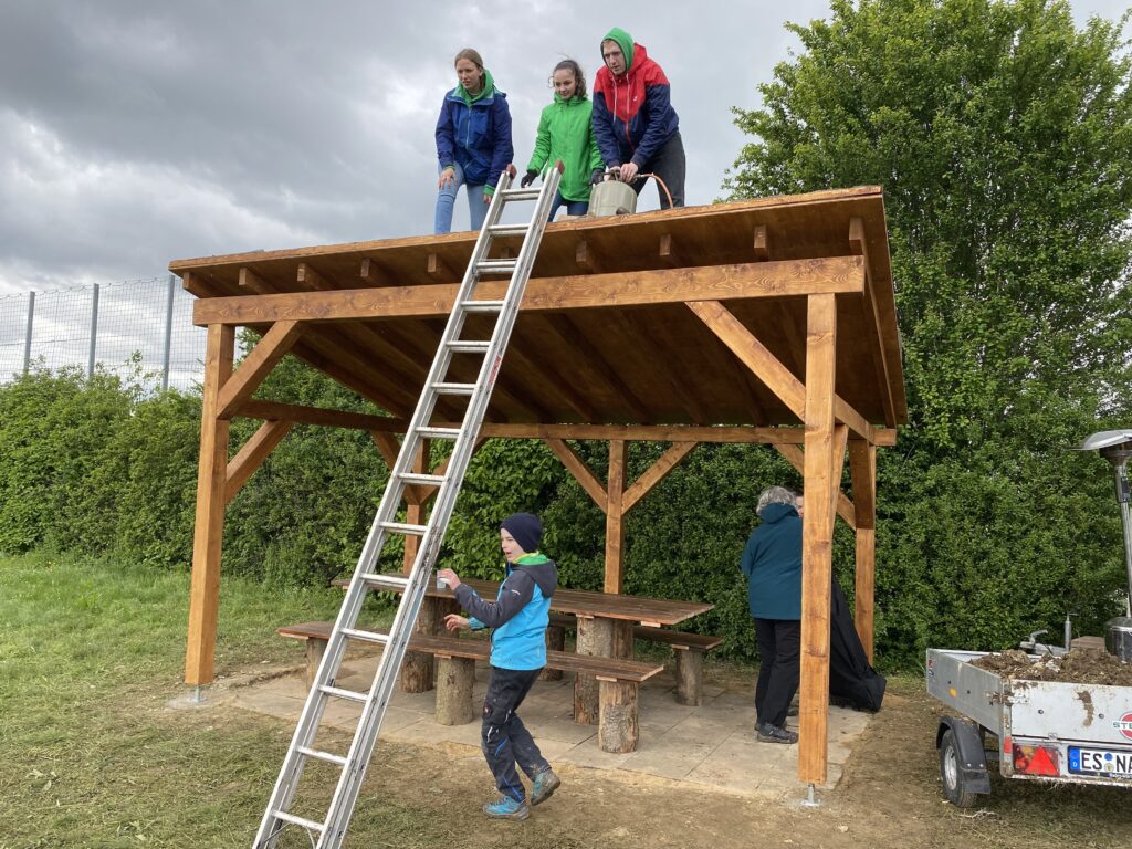 Die Projektgruppe der katholischen Jugend Nürtingen hat es vollbracht – innerhalb der bundesweiten 72-Stunden-Aktion hat sie für unser HöGy eine Grillstelle samt Sitzgelegenheiten und Unterstand gebaut und damit dem äußerst miserablen Wetter getrotzt.