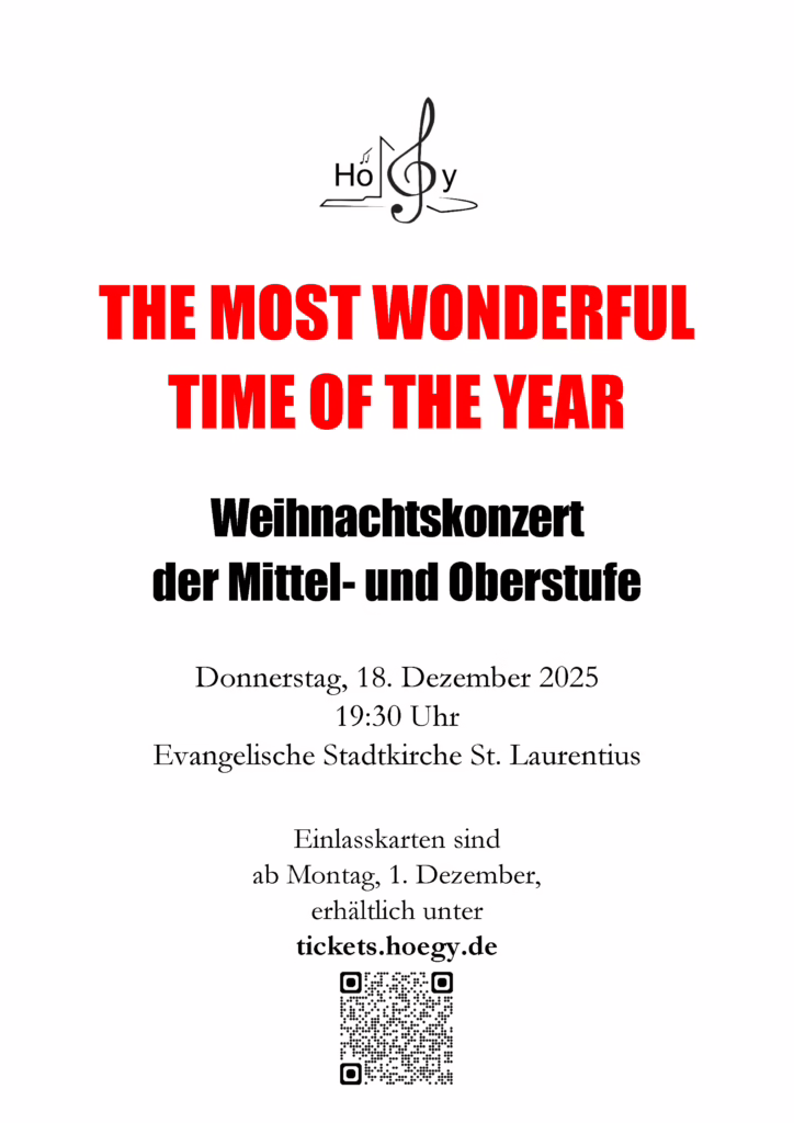 Am Mittwoch, 17. Dezember, 19:30 Uhr, sind die Mini-BigBand, die Bläserklasse 6, das Vororchester, der Unterstufenchor und, als besondere Gäste, der Musik-Leistungskurs der Kursstufe 1 mit von der Partie.