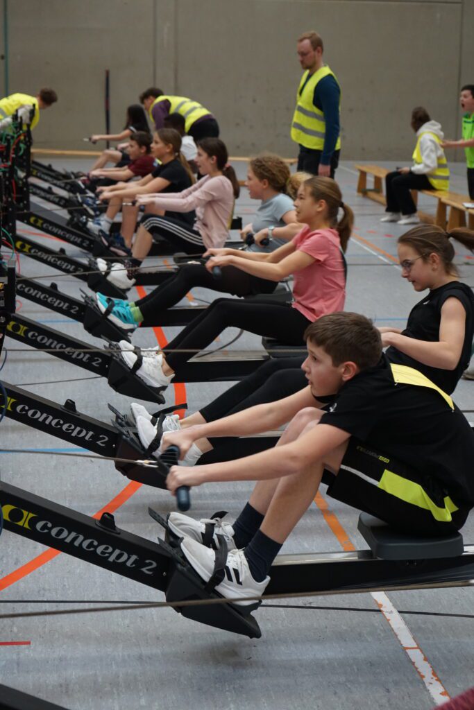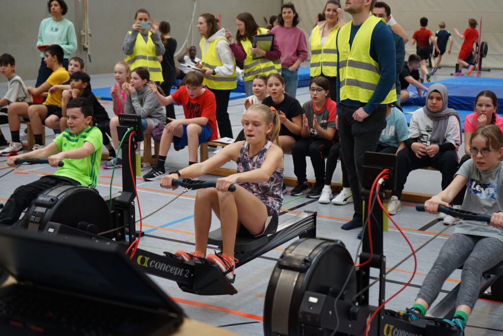 Ein ohrenbetäubender Anfeuerungslärm hallte diesen Freitag durch die Sporthalle des Hölderlingymnasiums, als die Schülerinnen und Schüler der sechsten und siebten Klassen sich in einem mitreißenden Wettkampf auf den Ergometern maßen.