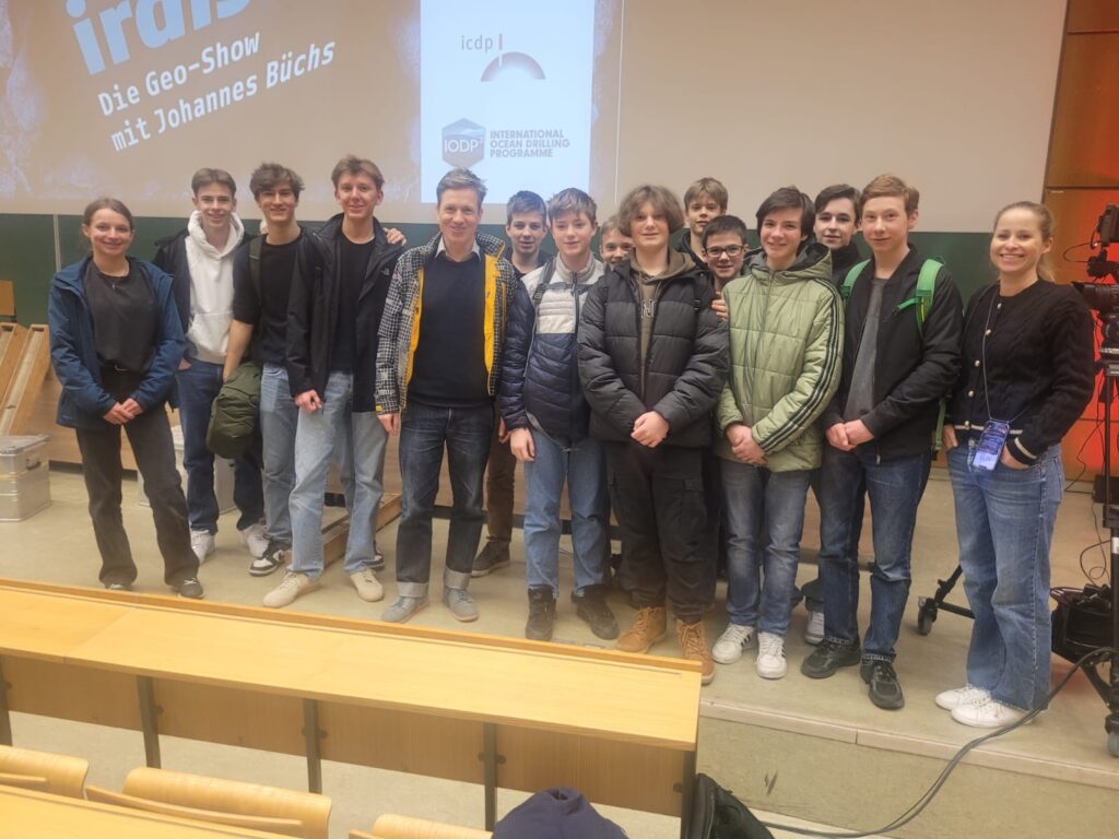 Der Tag startete um 8:40 Uhr am Nürtinger Hauptbahnhof mit einem Geburtstagsständchen für eine Mitschülerin. In Tübingen angekommen, ging es sofort zur Show im Hörsaal der Universität, der mit rund 450 Schülern und Schülerinnen gut gefüllt war. Für uns war es die erste Erfahrung dieser Art an einer Universität. Auf dem Programm standen unter anderem Interviews mit Geowissenschaftlern, die von ihren Forschungsprojekten berichteten. So erfuhren wir unter anderem aus erster Hand von Vulkanforschung aus Tansania oder Antarktis-Forschung. Die Entnahme von Bohrkernen spielt dabei immer eine zentrale Rolle. So ist es den Forschern z.B. möglich, wissenschaftliche Beweise für die Existenz des Klimawandels zu sammeln, indem sie in Eisschichten eingeschlossene Luftbläschen analysieren und vergleichen. Höhepunkt der Veranstaltung war eine Live-Schaltung auf ein Forschungsschiff vor der Küste Griechenlands, das die Entstehung von Erdbeben und Tsunamis untersuchte, um ein Frühwarnsystem zu entwickeln. Immer wieder durften auch Schüler an Experimenten und Quizfragen teilnehmen, was auch zwei Schüler aus dem HöGy taten. Zu gewinnen gab es geologische Fundstücke. Nach etwa 90 Minuten war die Show beendet und es war Zeit für Andenken und Fotos sowie im Anschluss für ein Mittagessen in Tübingen. Um kurz nach 14 Uhr waren wir nach einem informativen und interessanten Ausflug wieder zurück in Nürtingen.