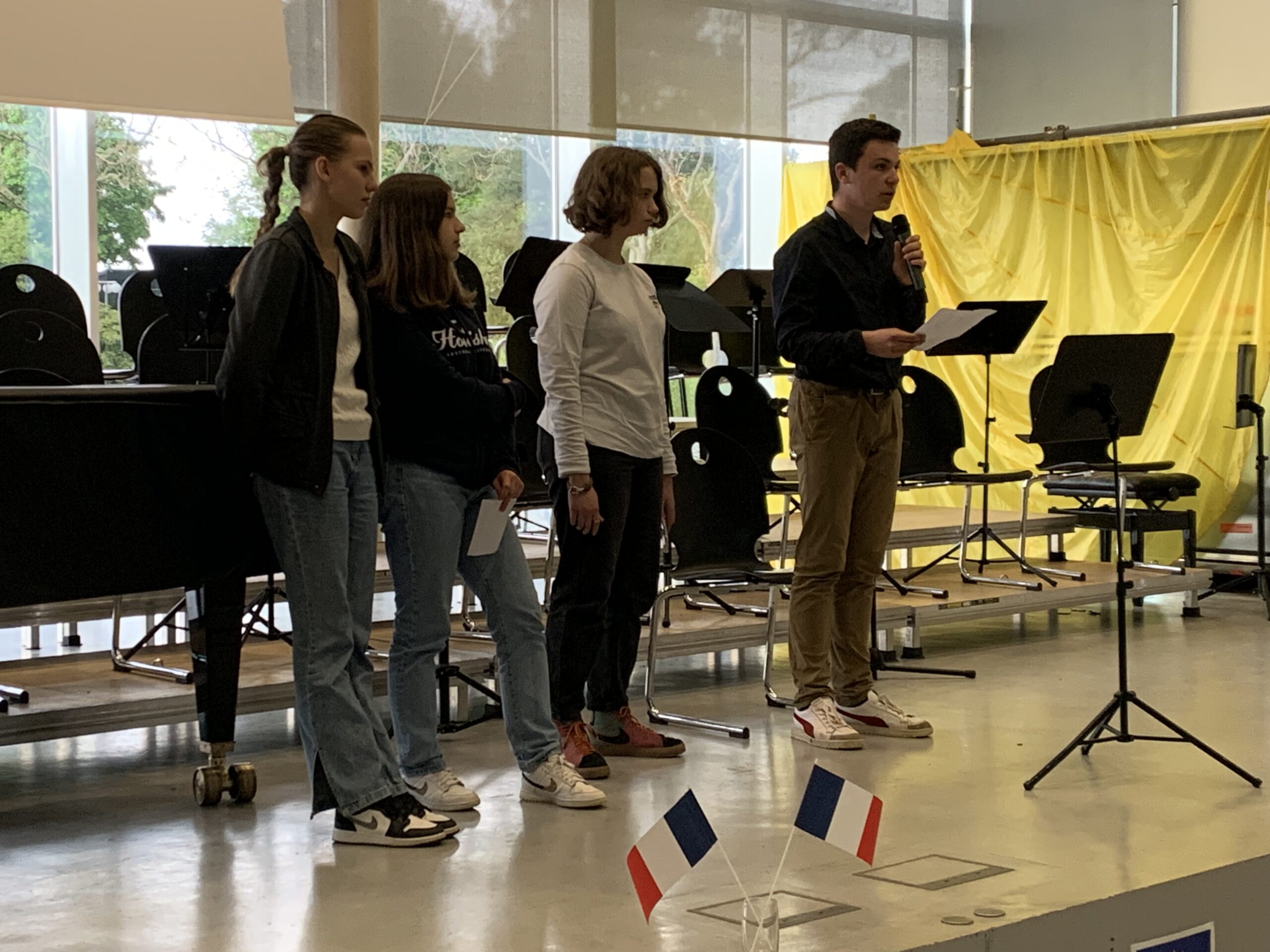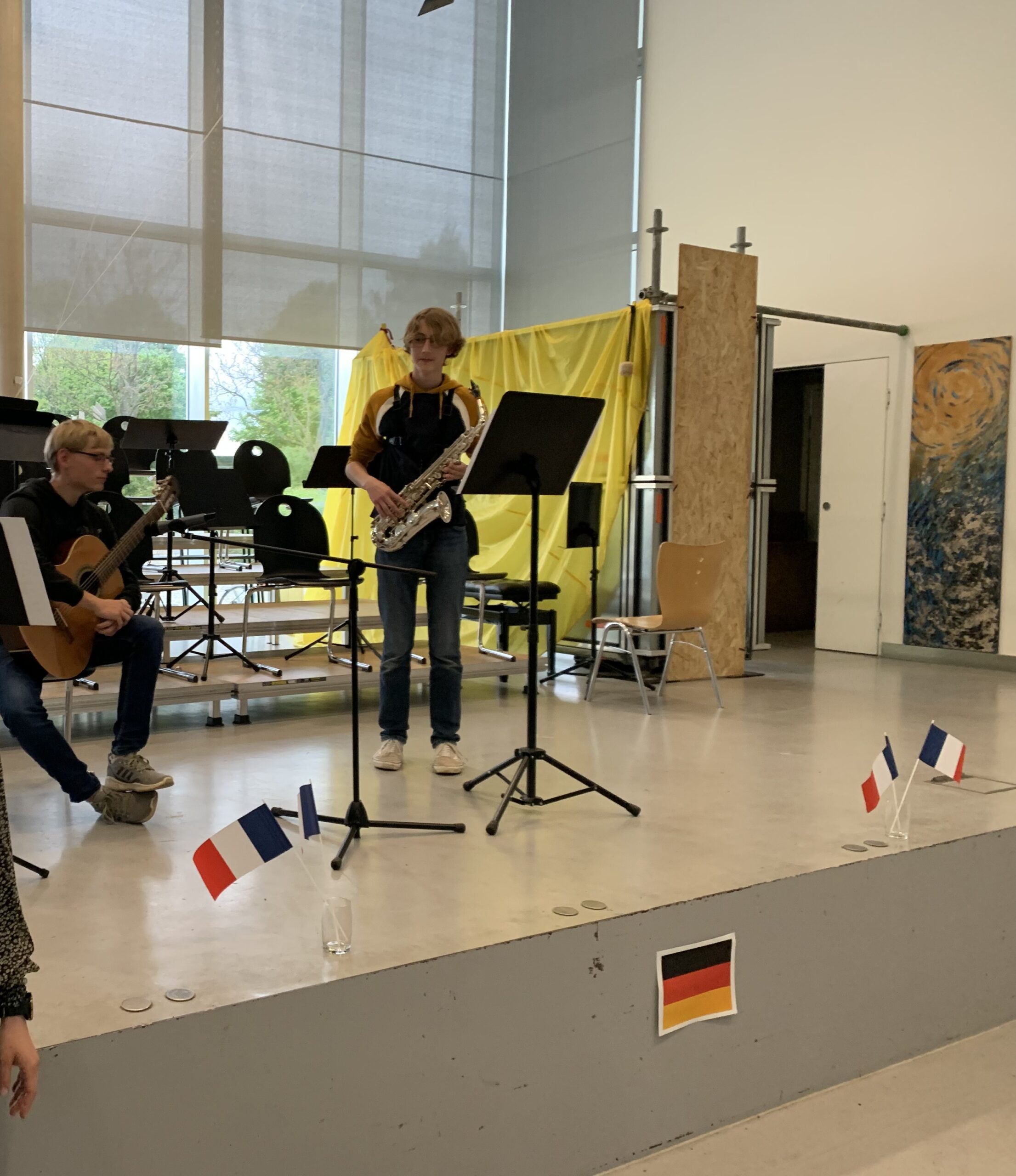 Am nächsten Morgen nahmen die Franzosen die ersten zwei Stunden mit uns am Unterricht teil, unter anderem in den Fächern Englisch und Mathe. Um 9:35 Uhr bekamen sie dann eine Schultour mit Herrn Munz und im Anschluss wurden sie von Schulleiterin Frau Selb herzlichst begrüßt. Um 10:20 Uhr verließen die Franzosen das Högy, um mit der Bahn nach Stuttgart zu fahren und dort eine Führung durch das Porsche-Museum zu bekommen. Als sie gegen 17:00 Uhr wieder an der Schule eintrafen, wurden sie von uns abgeholt, worauf ein erneutes gemeinsames Abendessen folgte. Anschließend trafen wir uns mit anderen Austauschpartnern zu einem Spaziergang, um ihnen unser Dorf zu zeigen.