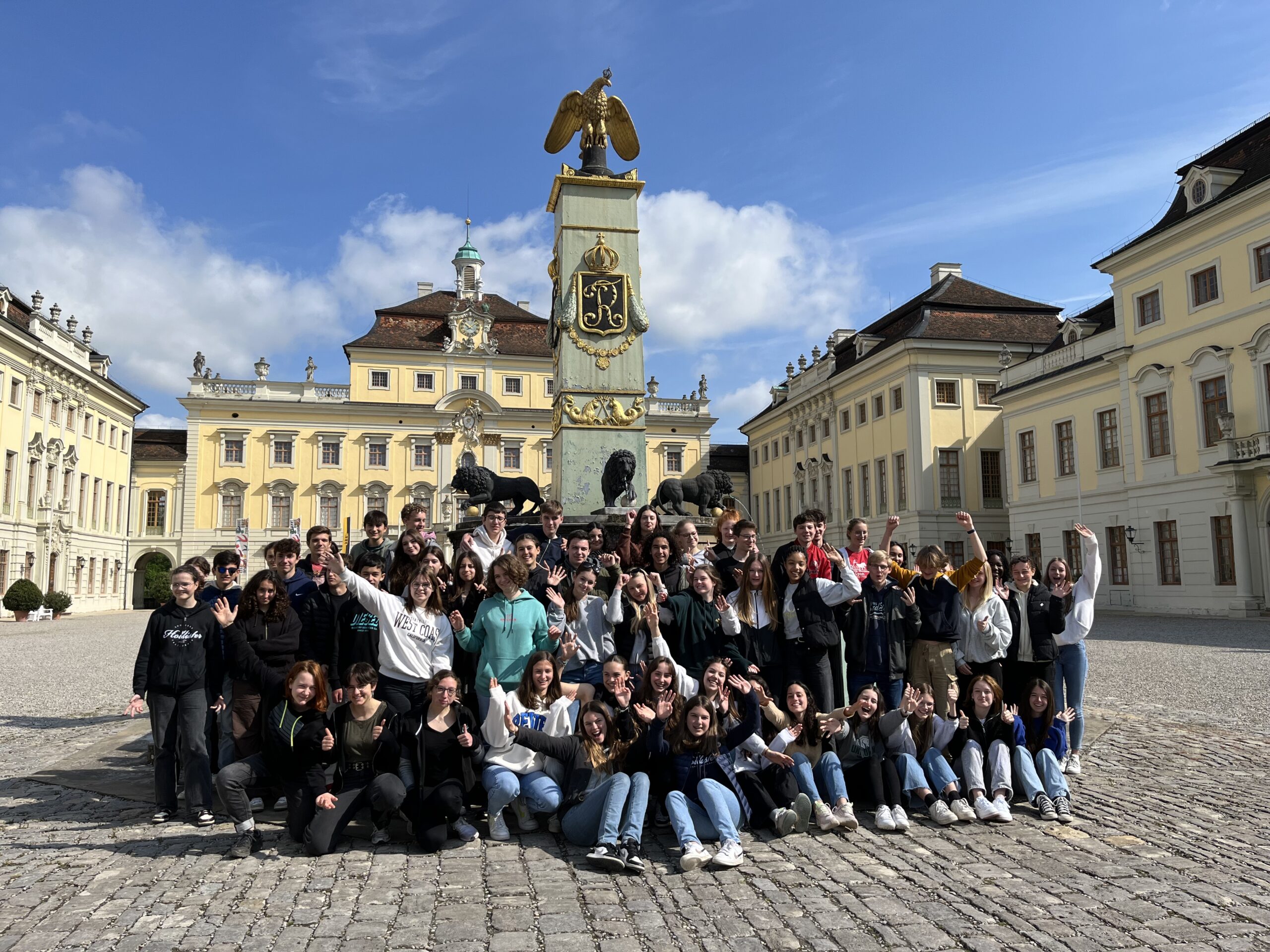 Am Montag startete unser erster gemeinsamer Tagesausflug nach Ludwigsburg. Aufgrund des kurzfristig angekündigten Streiks der deutschen Bahn mussten wir spontan auf einen privaten Reisebus zurückgreifen, was durch den tollen Einsatz von unseren Lehrkräften zum Glück reibungslos funktionierte. In Ludwigsburg angekommen bekamen wir eine Führung durch das wunderschöne Residenzschloss und den angrenzenden Märchengarten. Als wir gegen 17:00 Uhr zurückkamen, verabredeten wir uns zu einem gemeinsamen Abendessen im ,,Alaturka‘‘ in Nürtingen.