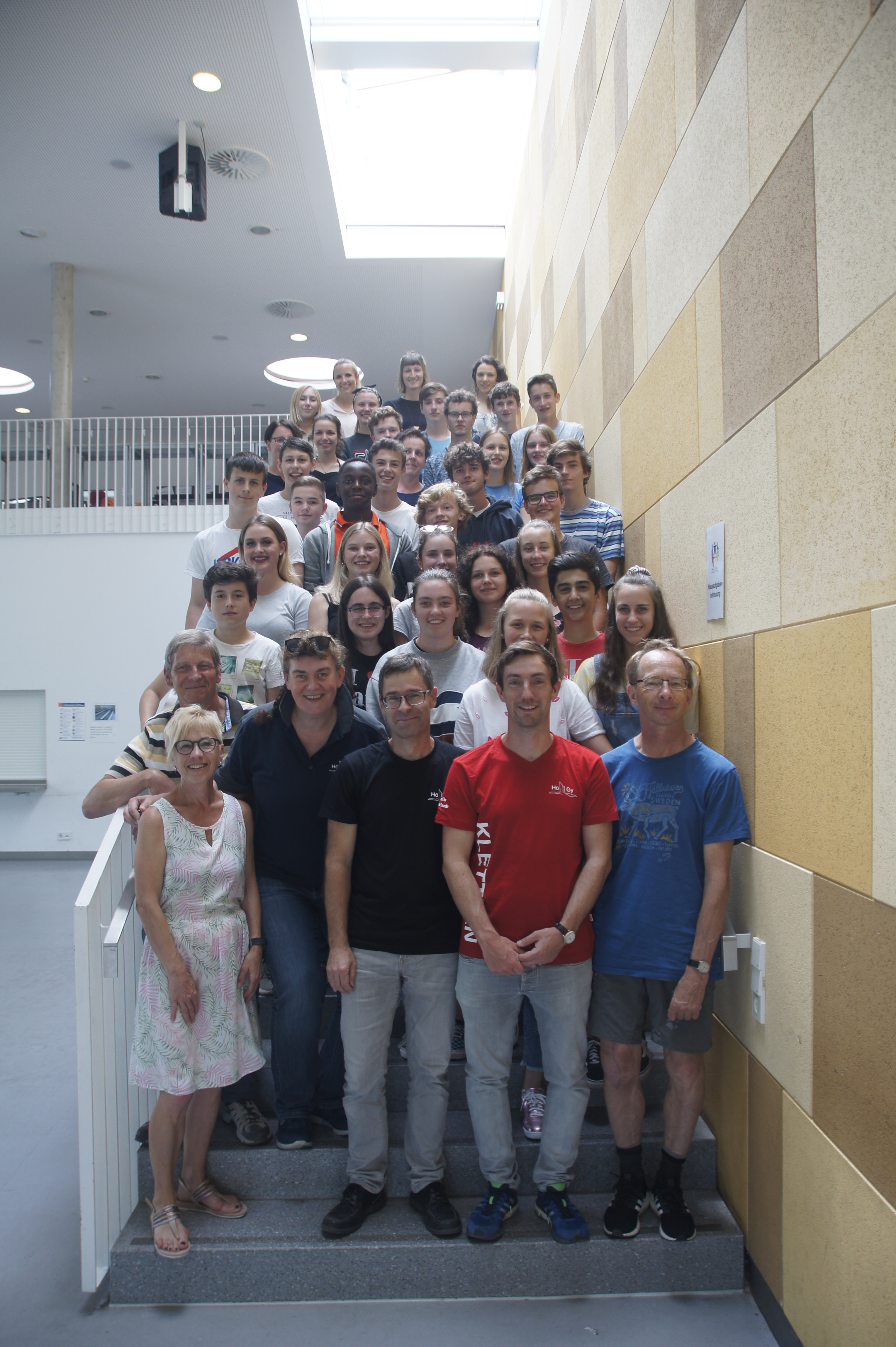 Mit einer launigen Rede bedankt sich Jörg Bauer bei allen Mitarbeiterinnen und Mitarbeitern der Ganztagesschule, eine „Ganz-Tolle-Sache“, wie er findet. Wie auch in den letzten Jahren lud das GTS-Organisationsteam alle Helfer kurz vor den Sommerferien zum gemeinsamen Pizzaessen ein und überreichte allen ein kleines Geschenk als Dank für ihr Engagement. Auf dem „Gemeinsamen-Treppen-Schnappschuss“ sind ca. zwei Drittel aller Jugendbegleiter zu sehen. Auf eine erneut gute Zusammenarbeit und zahlreiche Teilnahme an unserem umfangreichen Programm im neuen Schuljahr freut sich das