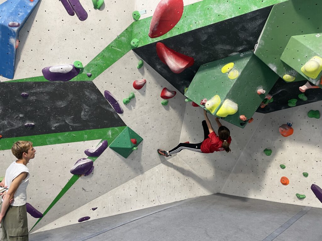 Die Teilnehmer/-innen mussten sich in verschiedenen Disziplinen messen: zwei Boulder, zwei Toproperouten und eine Speedroute (mit zwei Versuchen). Dieses Allroundprogramm verlangte den Teilnehmern/-innen alles ab. Die Boulder waren sehr anspruchsvoll und forderten von den Schülern/-innen höchste Konzentration und Kraft und jeder Punkt war hart erkämpft. In den Toproperouten erzielten unsere Teams viele Punkte und zeigten starke Kletterleistungen. Auch in der Speedroute waren die Leistungen unserer Schüler/-innen gut.