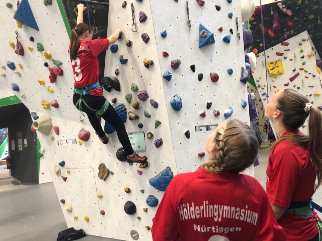 Das Hölderlin-Gymnasium war beim diesjährigen Sportkletterwettkampf “Jugend trainiert für Olympia” in Zuffenhausen stark vertreten. Mit zwei gemeldeten Mannschaften stellten unsere Schüler/-innen ihr Können unter Beweis und erzielten beeindruckende Ergebnisse. Team Högy 1 belegte den 12. Platz von insgesamt 16 Mannschaften, während Team Högy 2 einen hervorragenden 6. Platz erreichte.