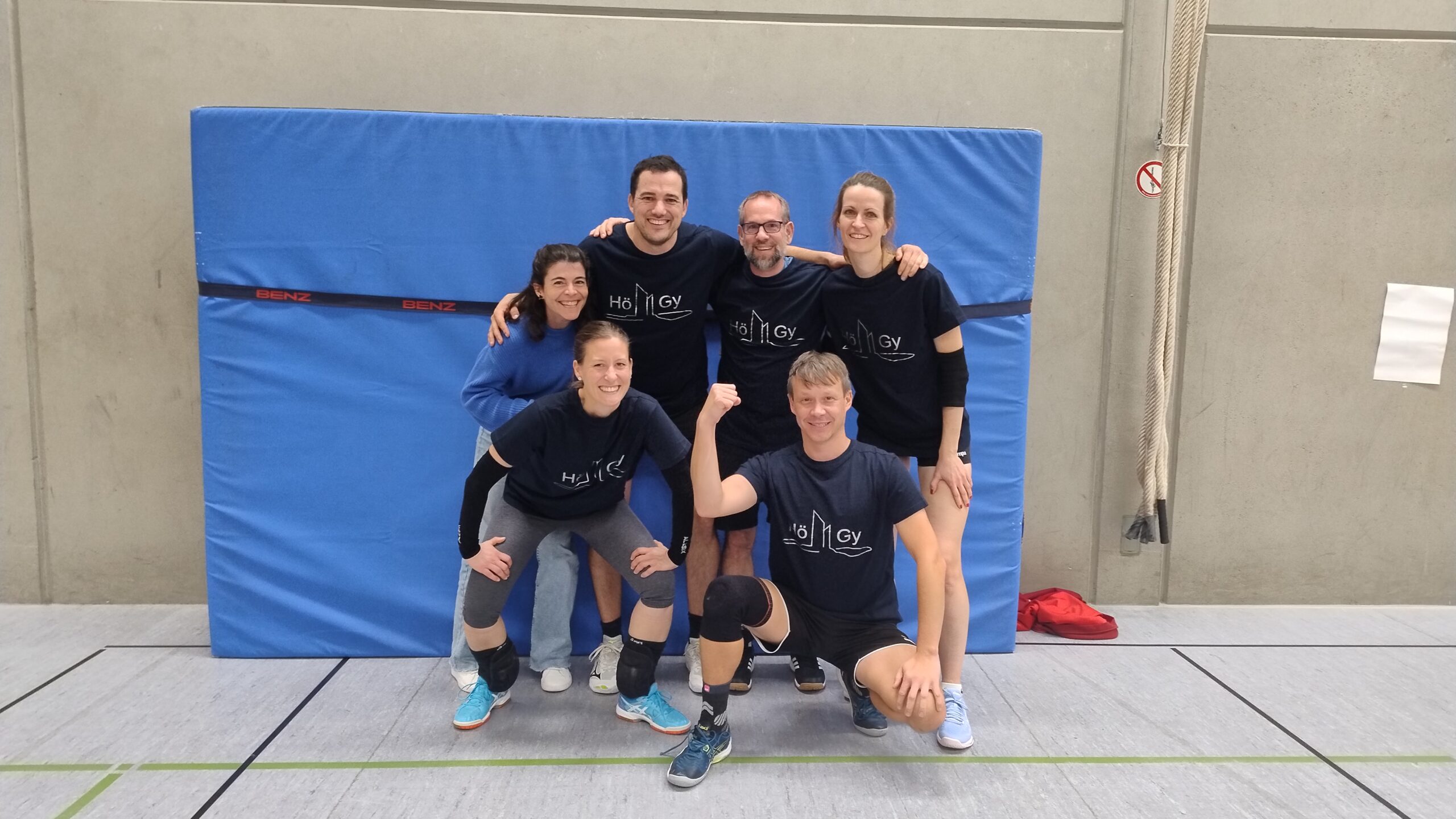 Auch in diesem Jahr flogen die Volleybälle von 7 Mannschaften in der Sporthalle kreuz und quer. Anfangs jedoch gab es einen besinnlichen Moment: Michael Schmid, ehemaliger Schulleiter des HöGy, dankte und gedachte dem verstorbenen Initiator des Turniers -Helmut Laumanns – in einer Schweigeminute. Vor 41 Jahren rief er ein internationales Schul-Volleyball -Turnier ins Leben, heute ist es zwar nicht mehr international, aber es kommen Mannschaften bis weit über Stuttgart hinaus.