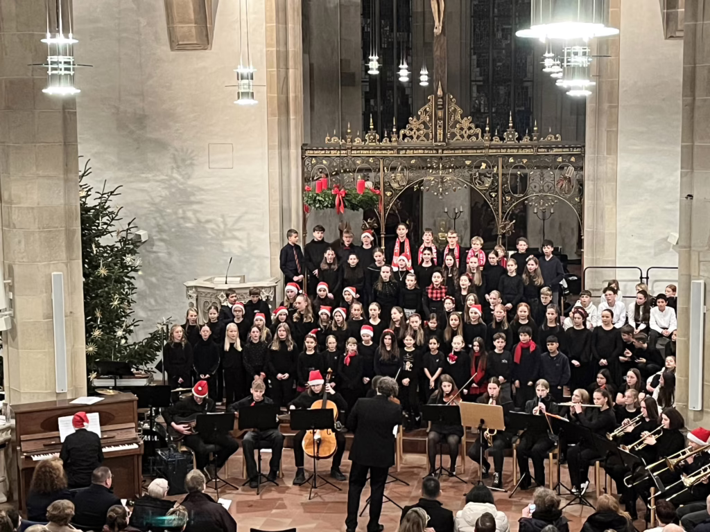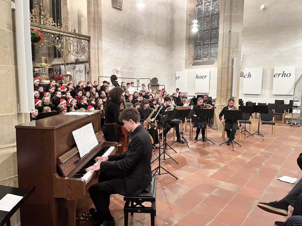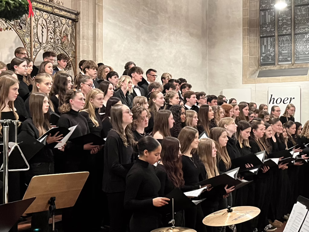 Die Tage vor den Weihnachtsferien sind nur noch von Filmen, Frühstück und Wichteln geprägt? Am Hölderlin-Gymnasium trifft das garantiert nicht zu. Denn hier vollbringen Jahr für Jahr mehrere hundert Schüler*innen in diesen Tagen bei den Weihnachtskonzerten musikalische Höchstleistungen. Auch die diesjährige Ausgabe, die an zwei Abenden in der evangelischen Stadtkirche stattfand, bildete hier keine Ausnahme. Das Publikum verließ die Kirche an beiden Abenden nach wahren Begeisterungsstürmen mit vielen Melodien im Kopf und einem Lächeln im Gesicht.