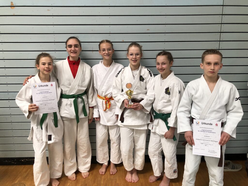 Am Freitag, den 28. März, fand in der Mörikehalle die Schulmeisterschaft des Regierungsbezirks Stuttgart im Judo statt. Durch den Sieg in einer Altersklasse konnte man sich nicht nur einen Pokal erkämpfen, sondern auch automatisch die Qualifikation für das Landesfinale in Bietigheim-Bissingen im Juli. In einem spannenden Finale bezwangen unsere HöGy-Mädchen die Mannschaft des MPG mit 3:2. Mehr dazu in der Fotostory.