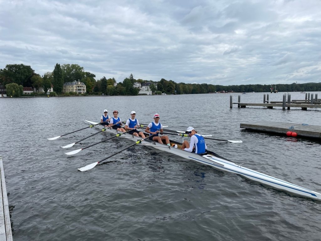 Nachdem die 5 Jungs (vier Ruderer plus einen Steuermann) sich im Landesentscheid für das Bundesfinale qualifiziert hatten, ging es für die erfolgreichen Ruderer des HöGy‘s und die beiden Betreuer Christian Rosenfeld und Fanny Keller im Herbst 2022 nach Berlin auf die ehemalige Olympiastrecke in Berlin-Grünau.
