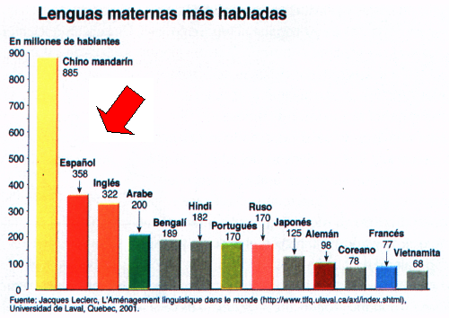 El castellano es la lengua materna de más de 350 millones personas. Con ello, el castellano se encuentra en el segunda lugar, lejos, claro está, del mandarín (China), pero por encima incluso de la lengua franca mundial, el inglés. A esto hay que añadir unas 100 millones personas que hablan el castellano como segunda lengua.