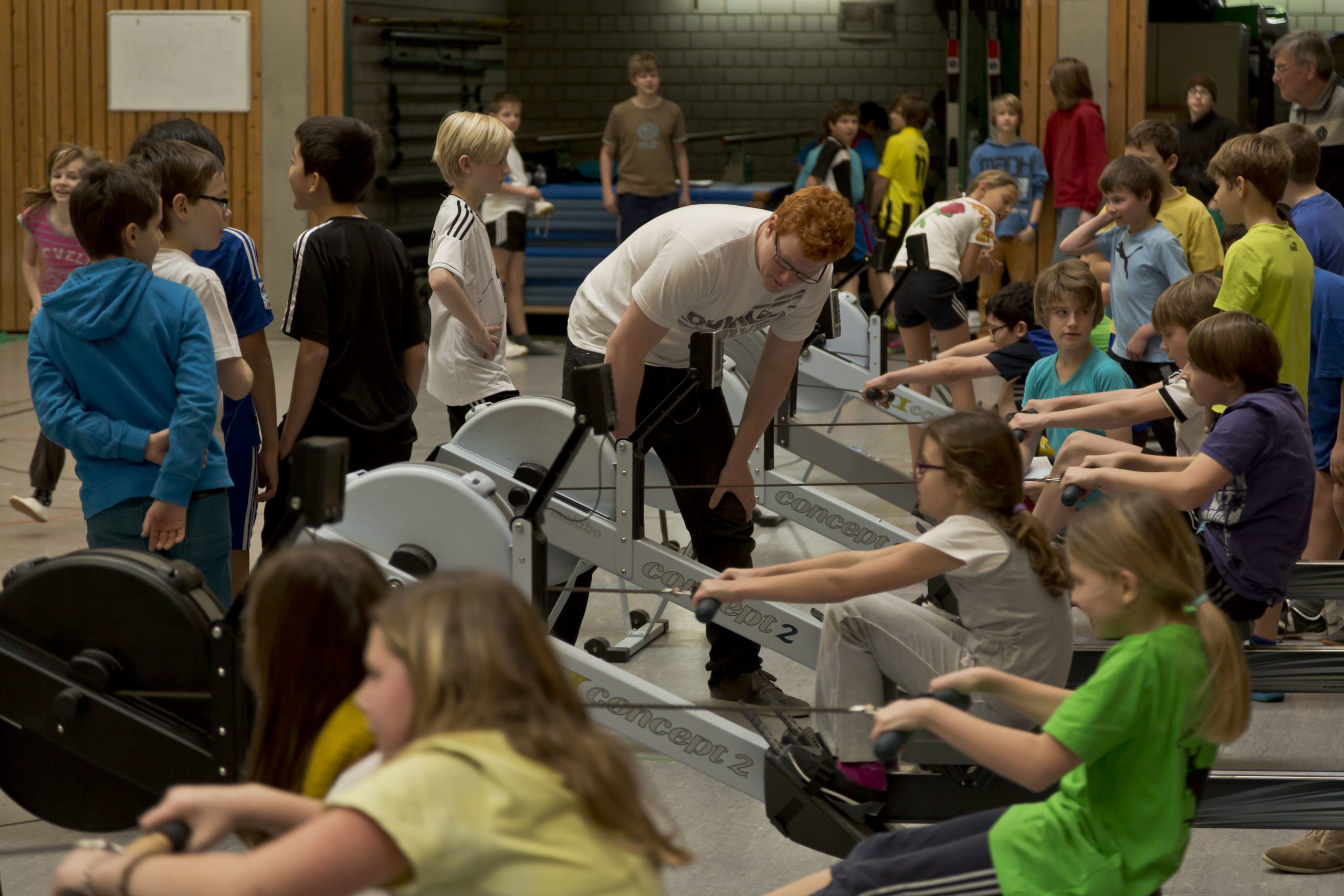 Bild_1: Große Begeisterung und Einsatz zeigten die Högy-Schüler auf den Rudergeräten.