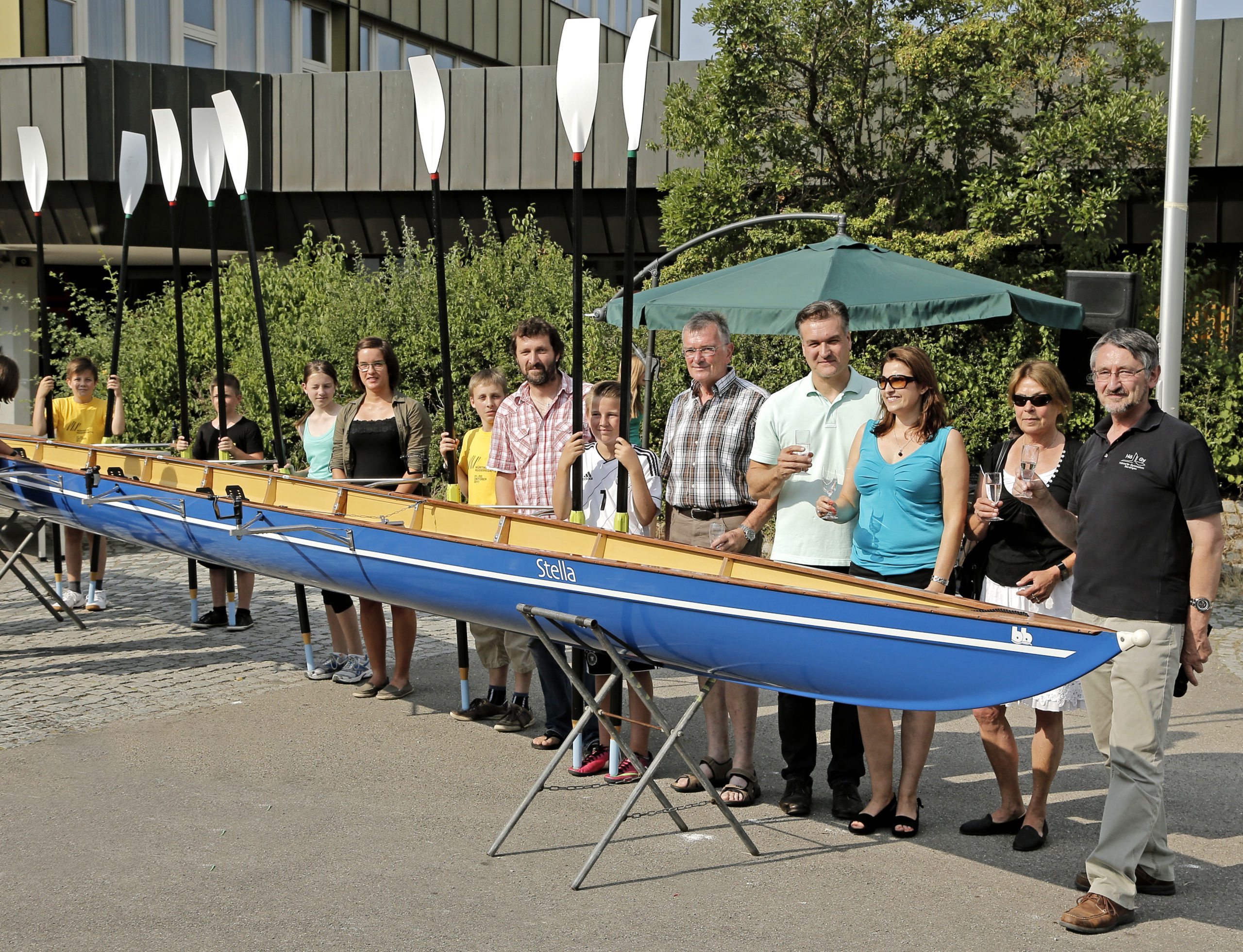 „Stella“ ist der Name, der dem nagelneuen Gig-Vierer Glück bringen soll; so nannte der junge Friedrich Hölderlin seine erste große Liebe. „Ebenso eng verbunden war er mit „seinem“ Fluss, dem Neckar“, wusste Rektor Schmid am vergangenen Dienstag in seiner Laudatio zu berichten. Und so schloss sich der Kreis, der die Kooperation zwischen dem Hölderlin Gymnasium und dem Ruderclub beschreibt. Im Rahmen der Ganztagesbetreuung kann so den 5. bis 7. Klassen schon im dritten Jahr die Ruder-AG angeboten werden, die auf dem Gelände des Nürtinger Ruderclubs stattfindet. Es wird in erster Linie gerudert, sobald die Temperaturen jedoch zu sehr in den Unternull-Bereich fallen stehen im Clubhaus Ruderergometer und ein Kraftraum zur Verfügung.