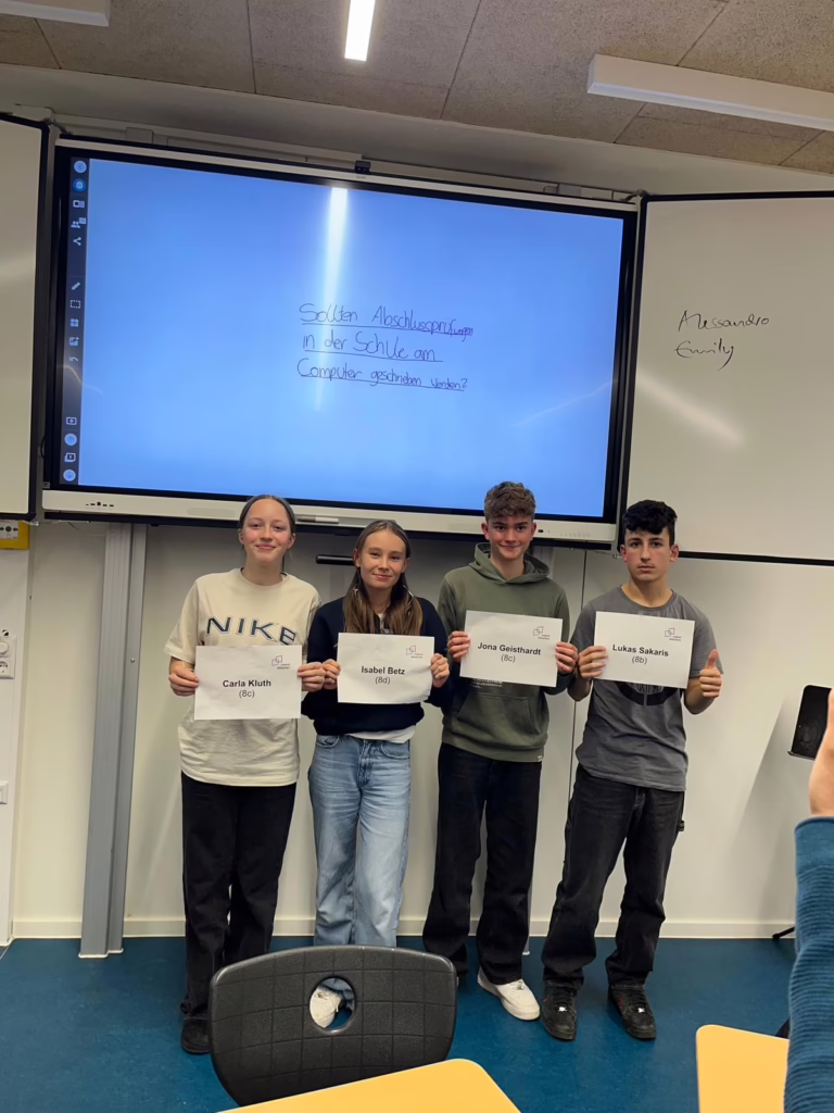 Am Ende gewann Carla Kluth aus der 8c die Debatte vor Isabel Betz (8d) und Jona Geisthardt (8c).