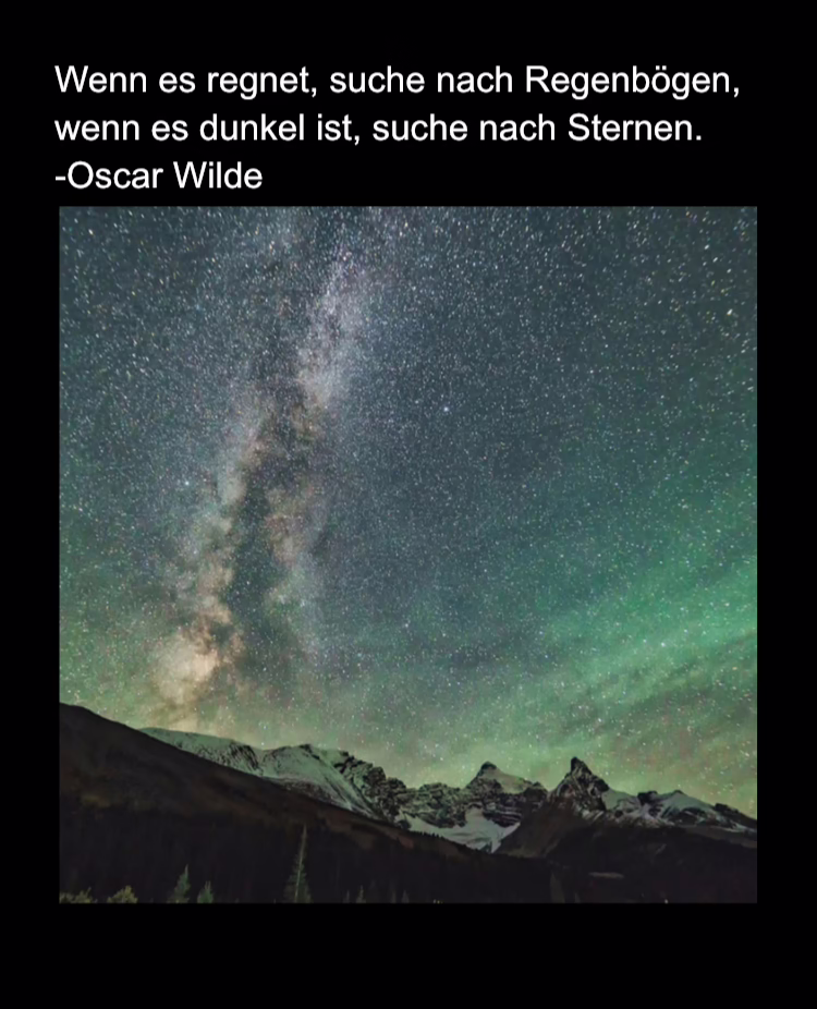 Der Leistungskurs Deutsch der Kursstufe 1 beschäftigte sich in einer Projektphase kreativ mit prägnanten Worten. Die Aufgabe war, selbst gewählte literarische Zitate (zum Teil sind die Texte auch von den Schüler*innen selbst geschrieben) mit optischen Eindrücken zu verweben, um sie in Szene zu setzen. Die Ergebnisse finden sich unten in der Galerie.