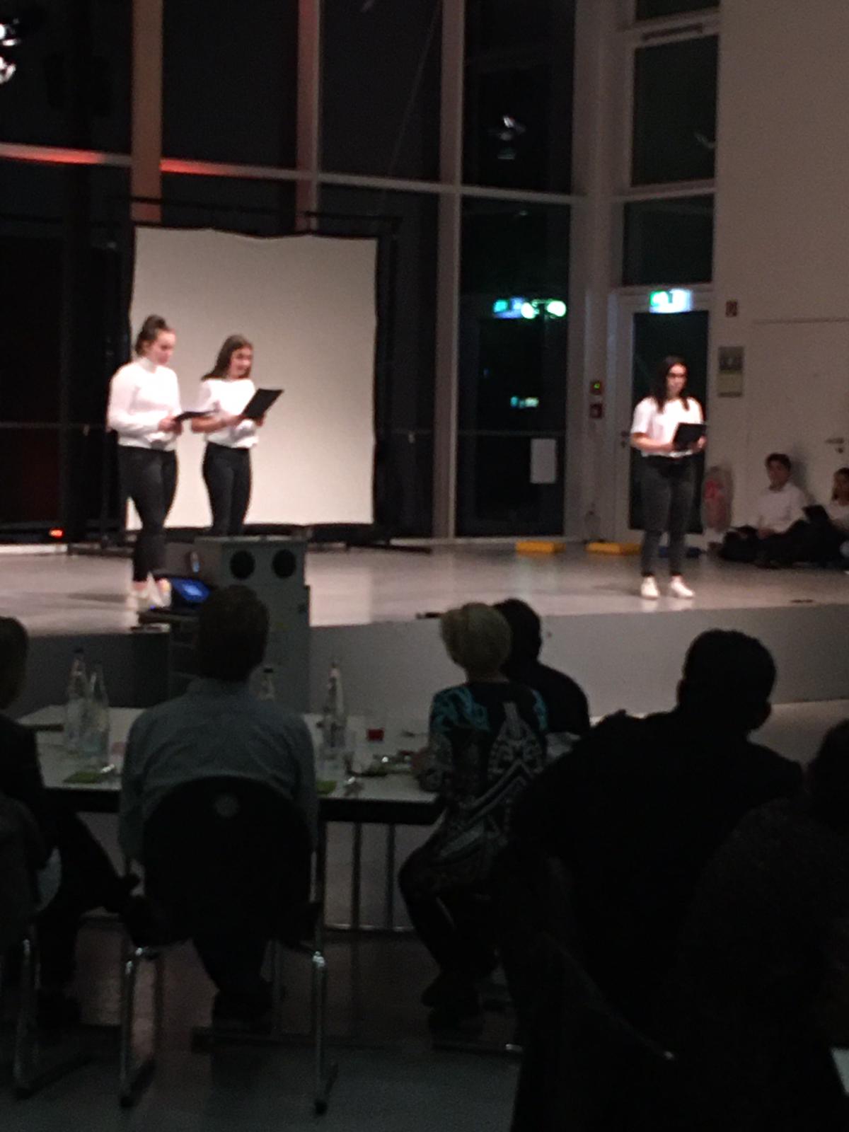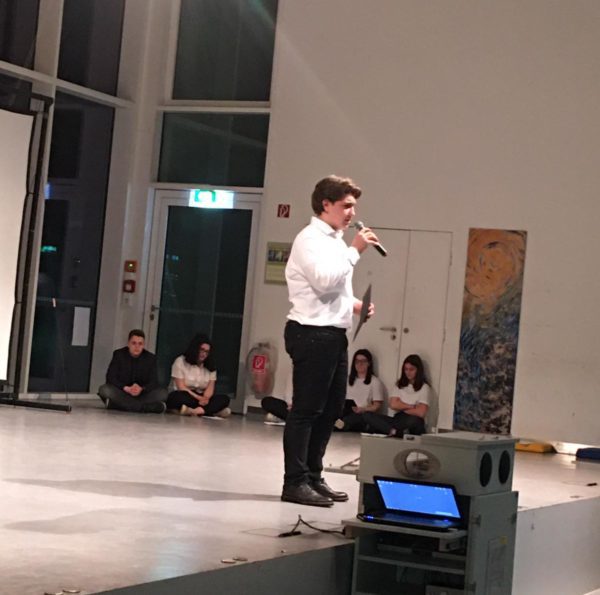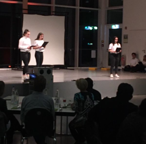 So widmete sich das von Jette Kopschinski geschriebene und von Ceyda Yüksel vorgetragene Gedicht „Der Kampf“ der Zerrissenheit der Menschen und gab einen Einblick in die komplexe Gefühlswelt, die das lyrische Ich zwar in Ihrer Dunkelheit erkannt hat, jedoch keinen Ausweg bieten kann. Einen weiteren beeindruckenden Text steuerte Lara Marie Schmid bei, der ausgehend von Friedrich Hölderlins Gedicht „Menschenbeifall“ die Einzigartigkeit jedes Menschen hervorhebt und dazu aufruft, zu genau dieser zu stehen und nicht der grauen Masse unreflektiert zu folgen.